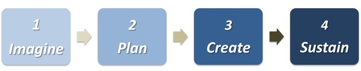 Our step-wise approach guides your team to imagine, plan, create and sustain effective change. Here's how it works: